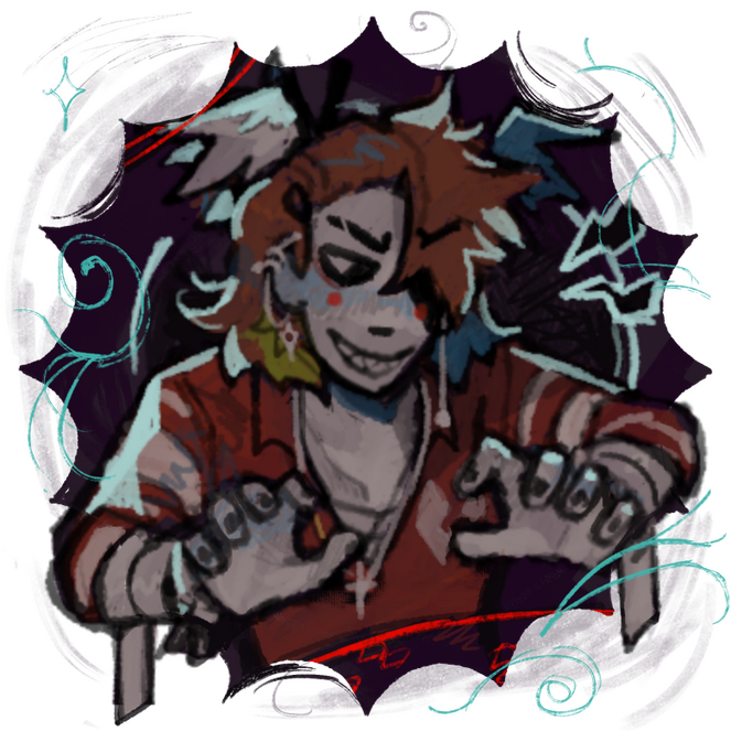 i mostly draw my dnd characters and fanart of my favourite animated stuff or video games ! if you're lucky my oc's make an appearance too!/ / / /im an aspiring character designer and concept artist! designing is my passion. i take a lot of inspiration from cartoons and video games and as of rn it ALL goes into dungeons and dragons writing./ / / /im a massive fan of the band los campesinos! too, if that's anything.?